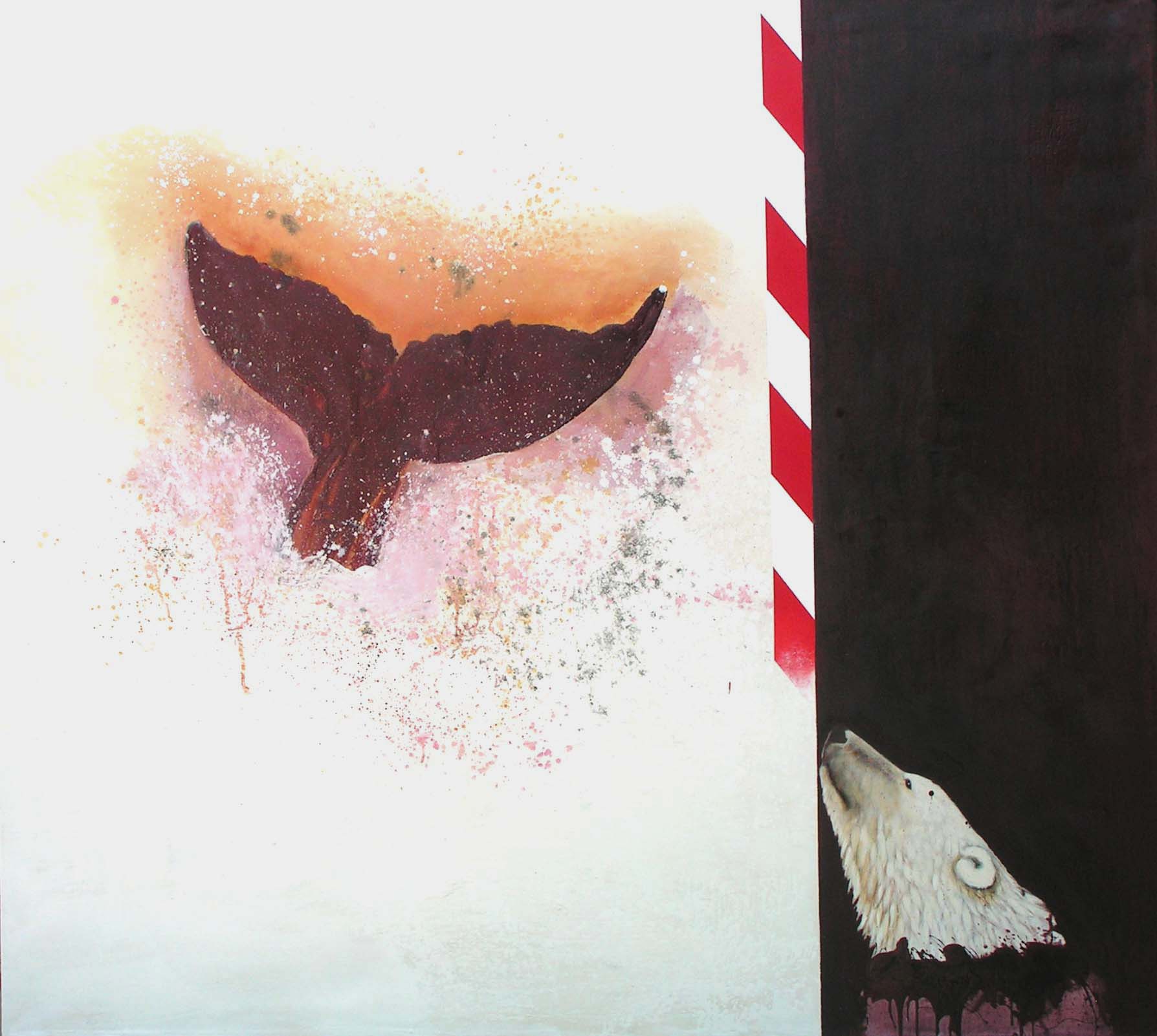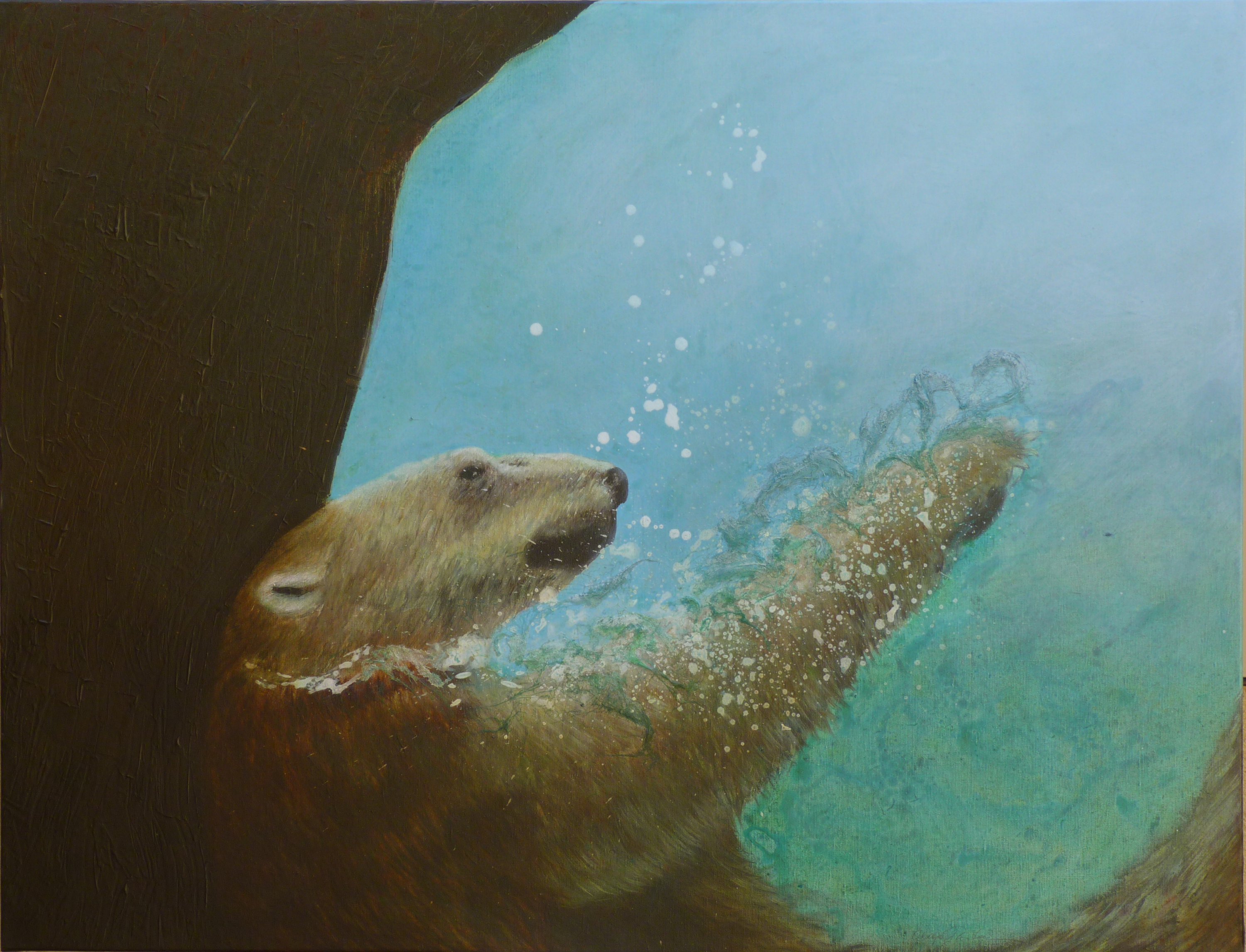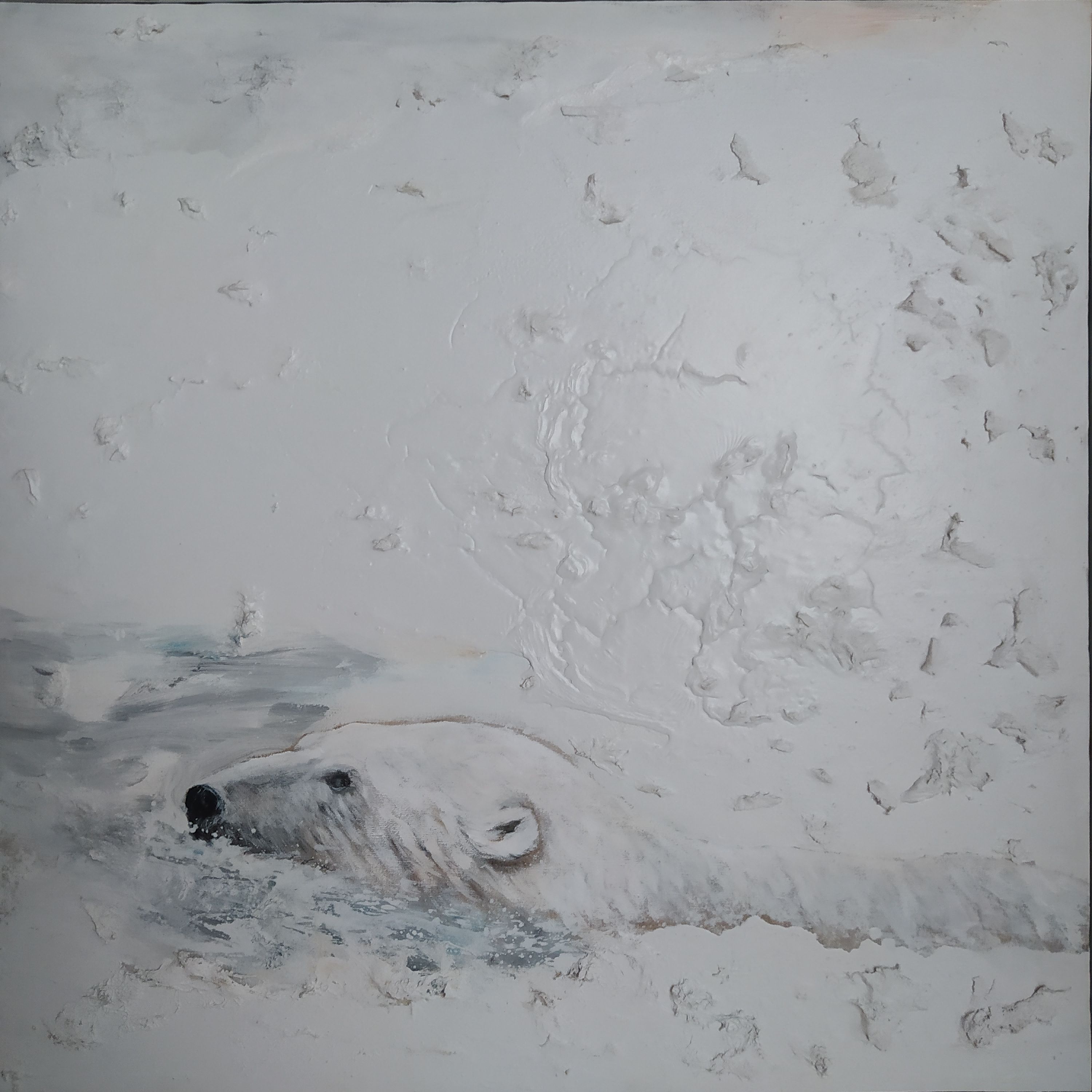 La facture très mince, en particulier des ours blancs s'opposent souvent à la matière qui les entoure. La peinture est absorbée par les fragments de fourrure qui se sont détachés des corps. L'animal nage au milieu de lui-même, entouré des dangers d'une nature changeante qui semble vouloir le rejeter.