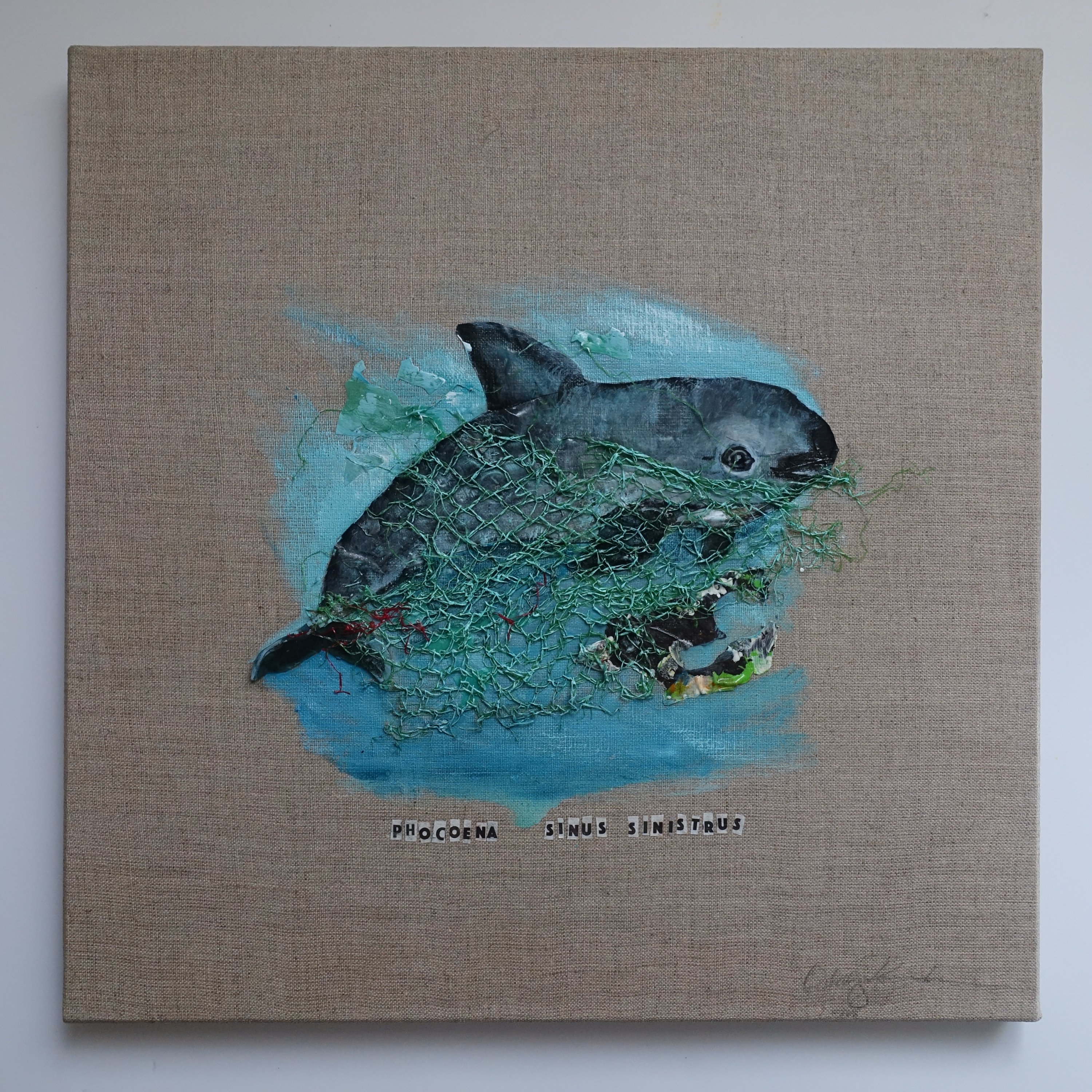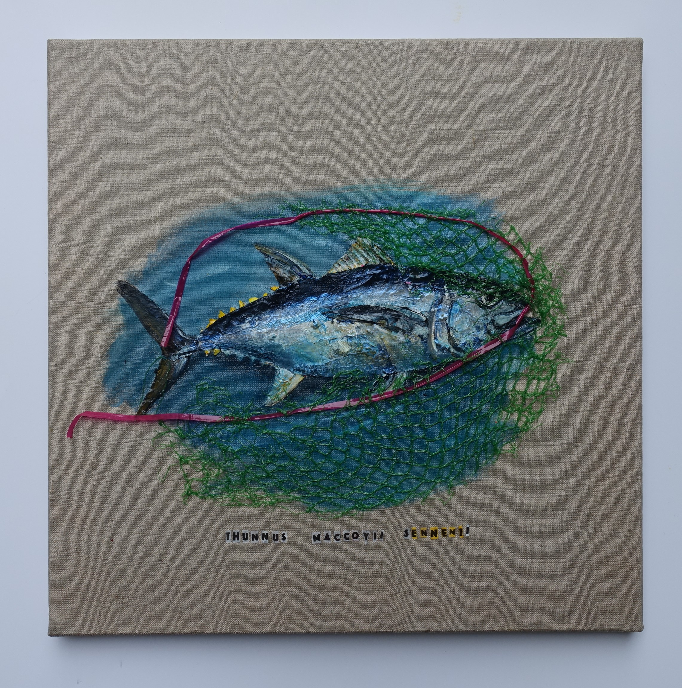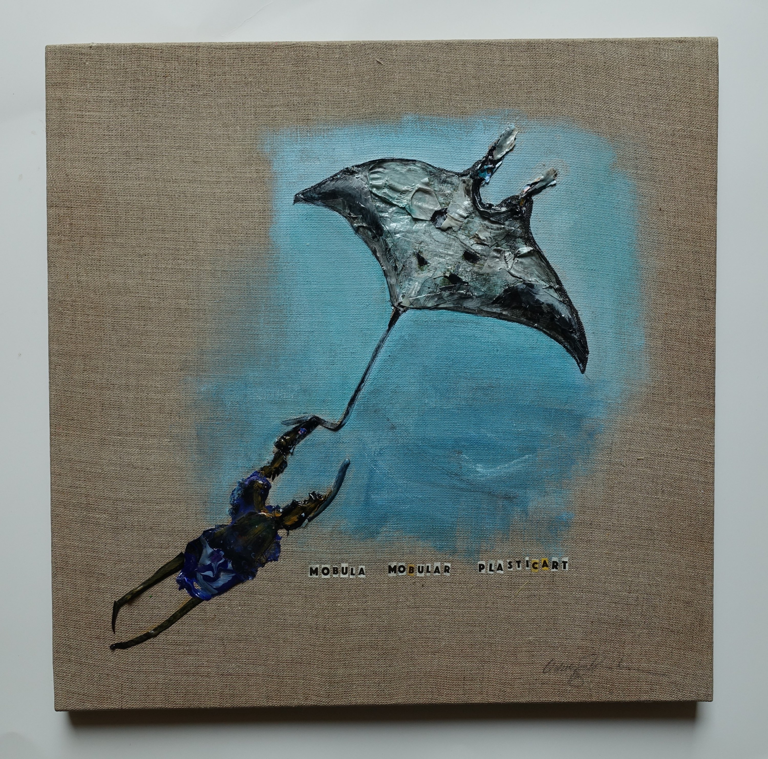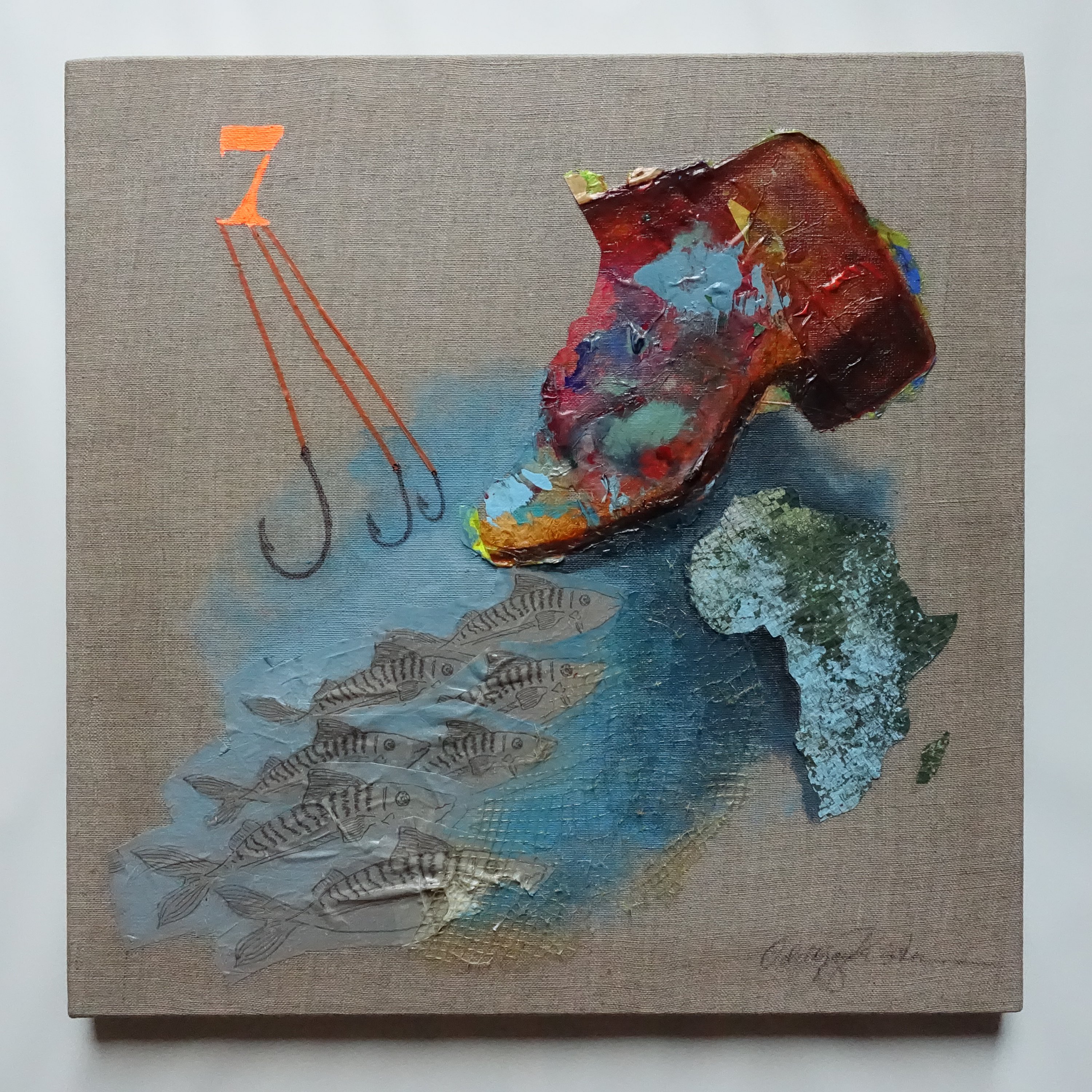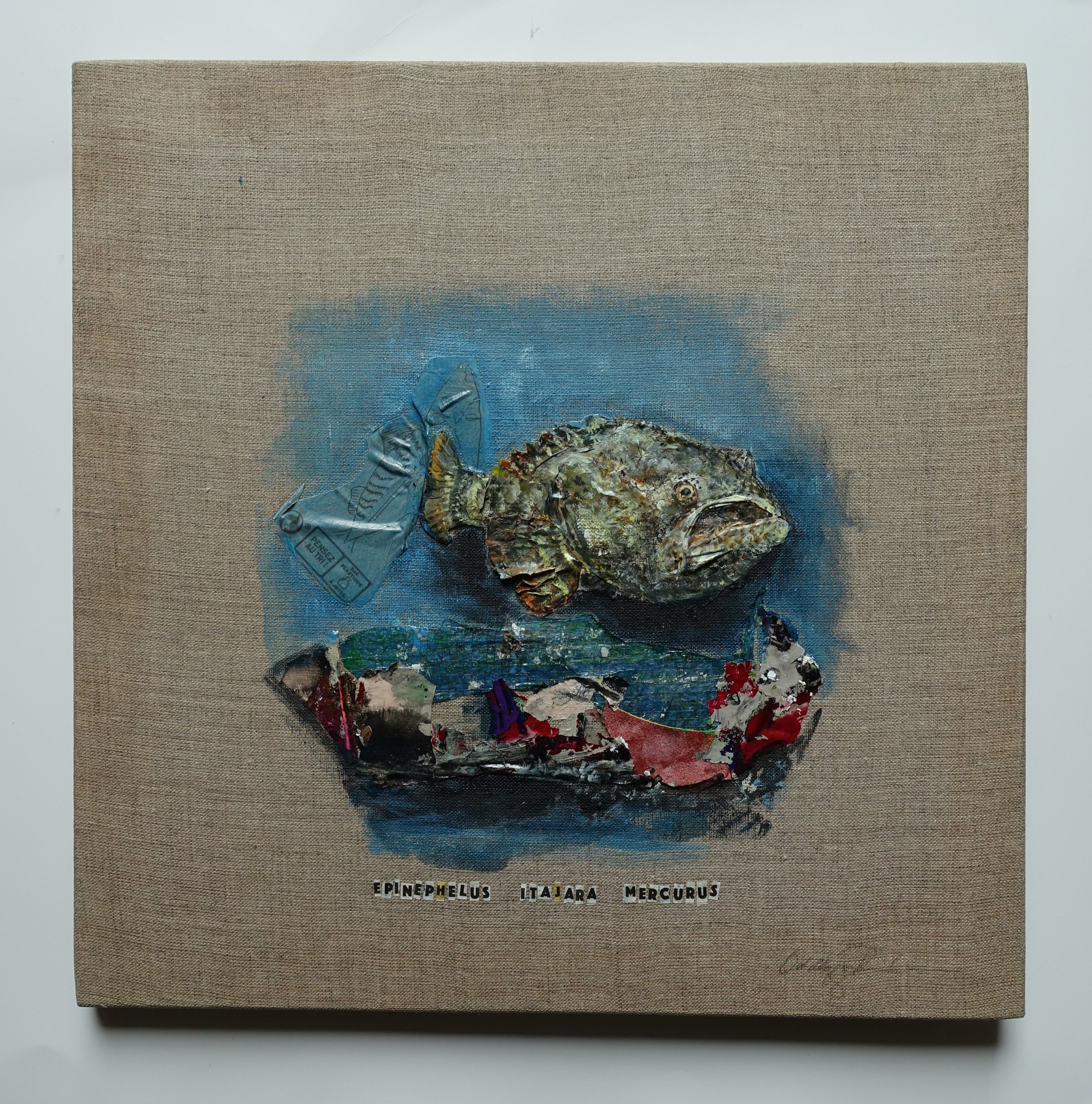 In recent years, I have set myself an overarching goal of producing as little waste as possible through recycling and transforming the various materials that I have found or received: paint scraps and window frames, glass, metal or mosquito nettings, lids, fabric, as well as plastic bits and nets collected from walks along the beaches in the area where I live. This is a series entirely made according to this recycling principle.