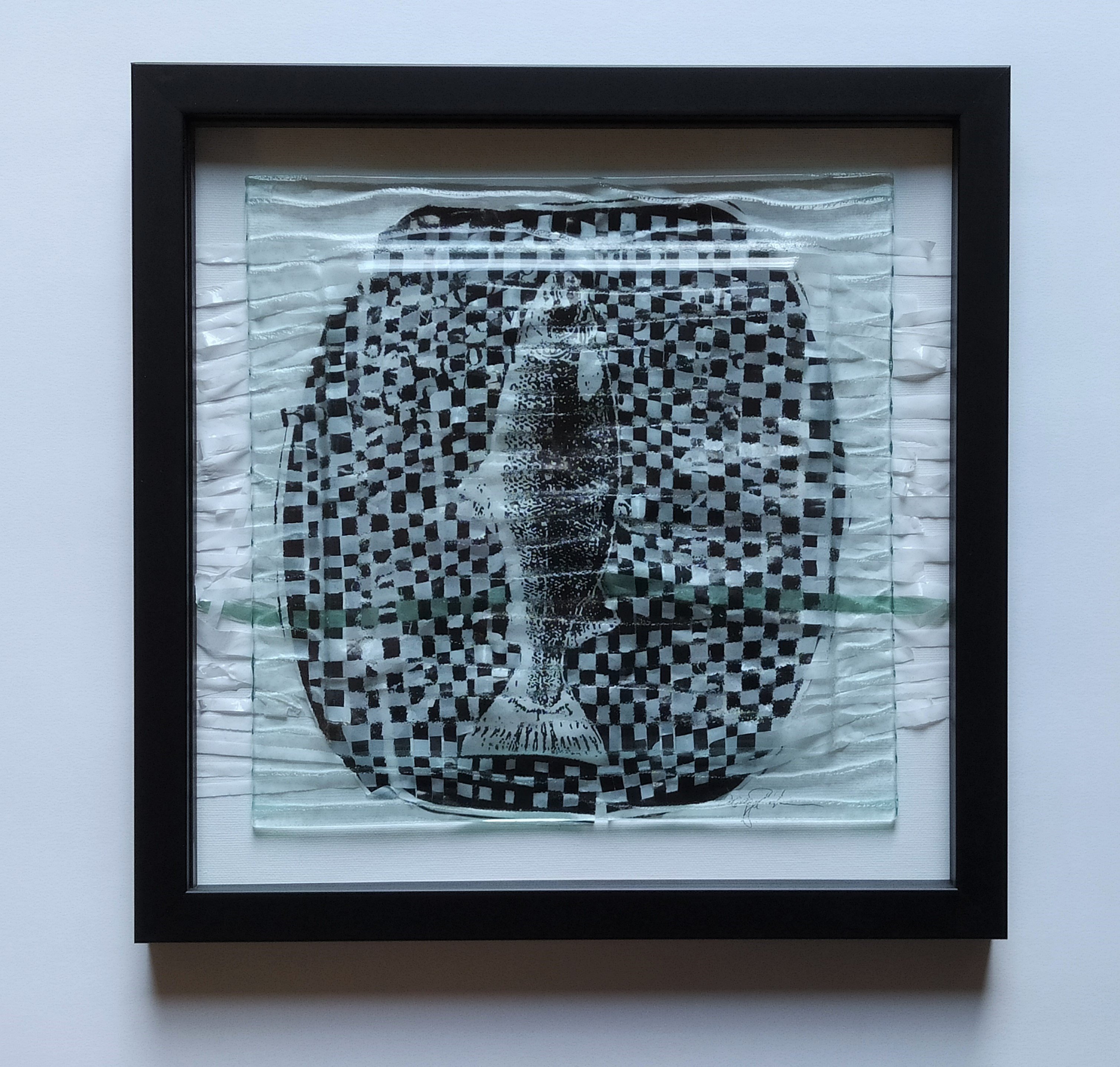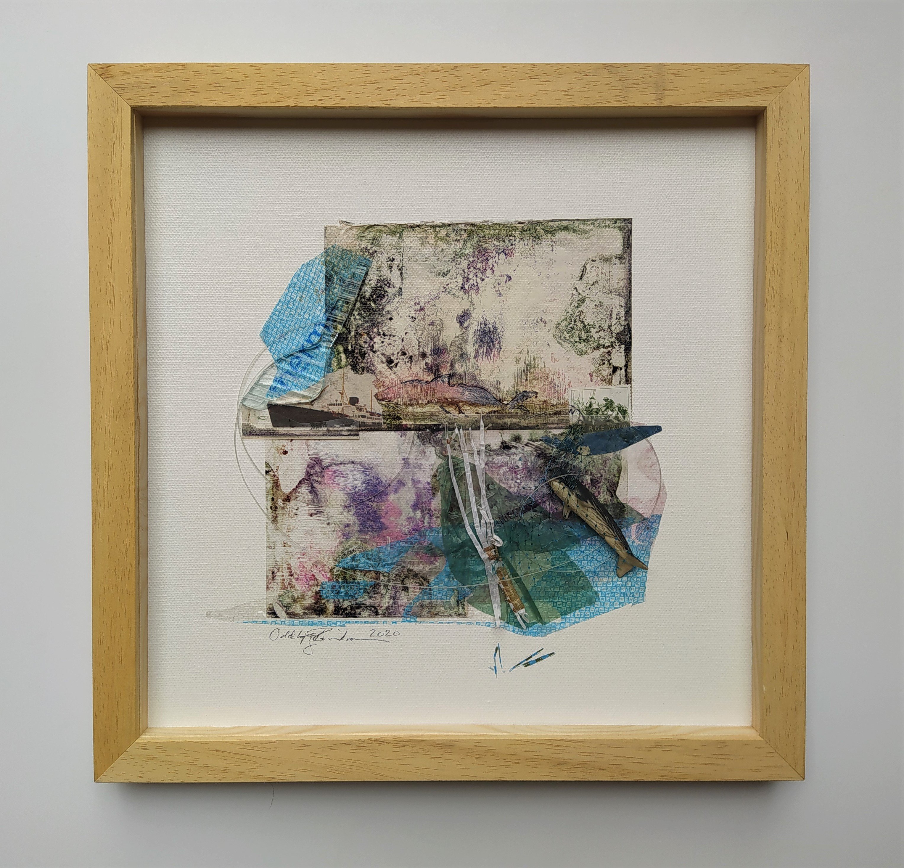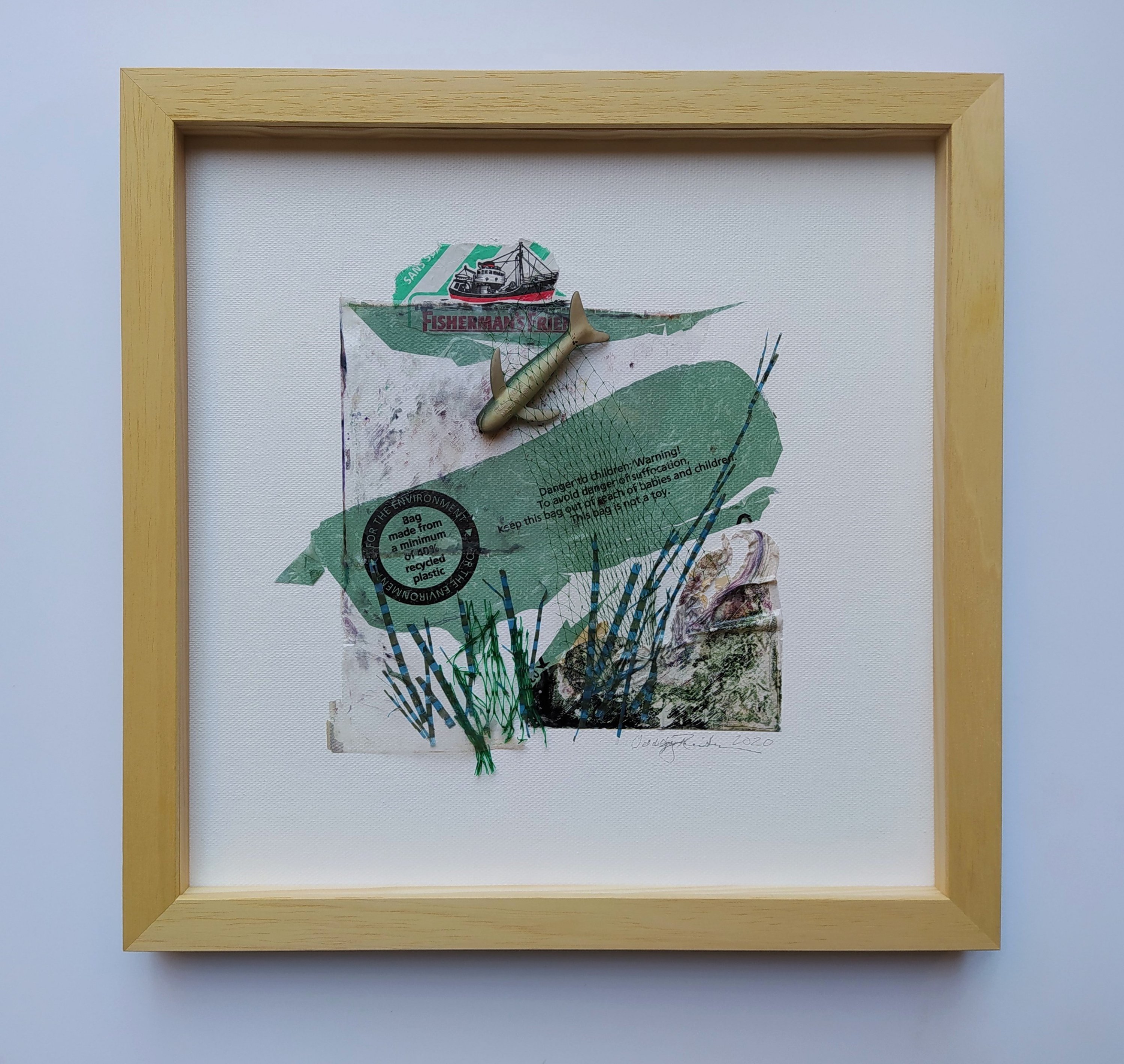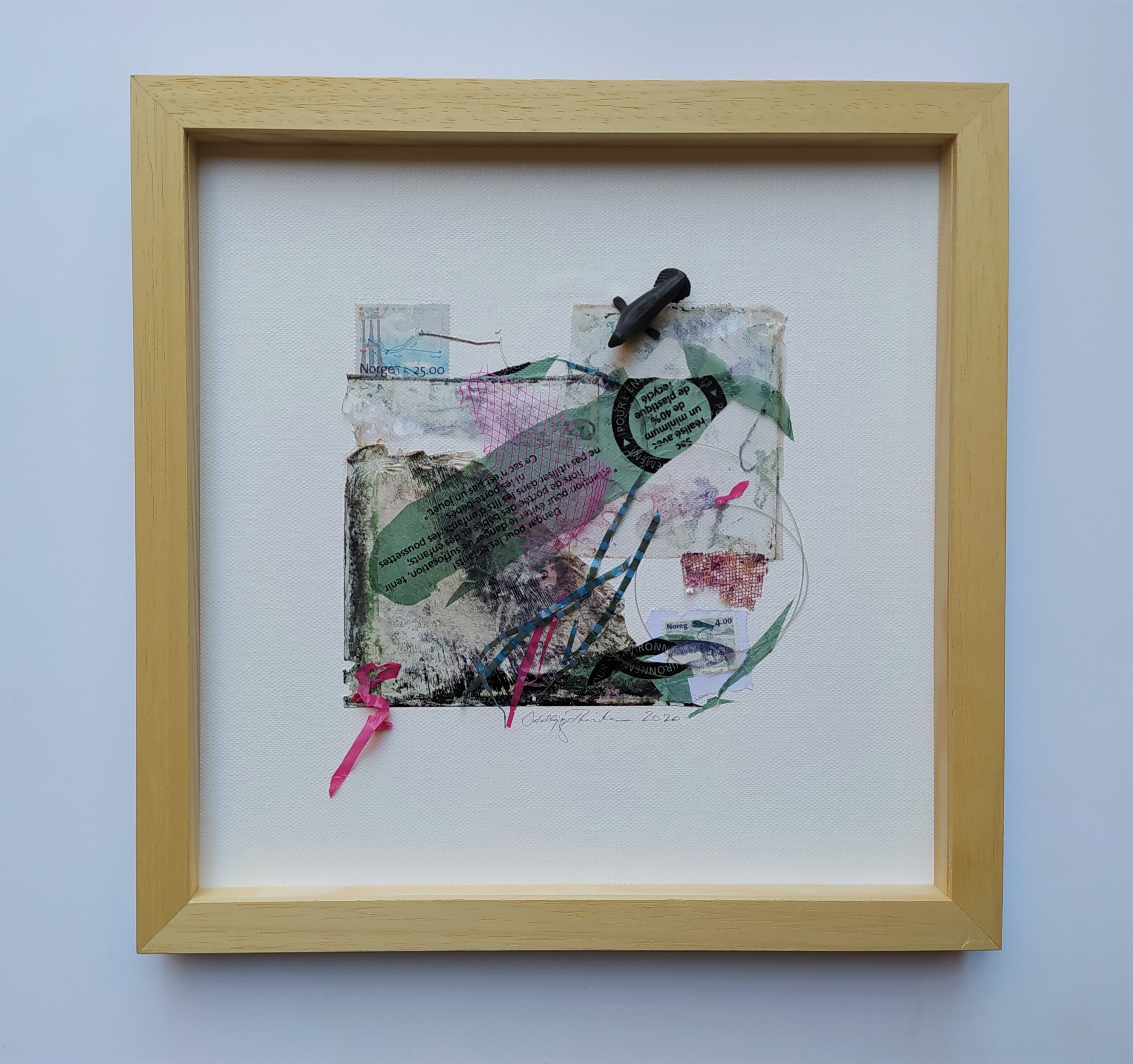 In recent years, I have set myself an overarching goal of producing as little waste as possible through recycling and transforming the various materials that I have found or received: paint scraps, broken glass and window frames, metal or mosquito nettings, lids, fabric, as well as plastic bits collected from walks along the beaches in the area where I live. These are two series made according to the recycling principle.