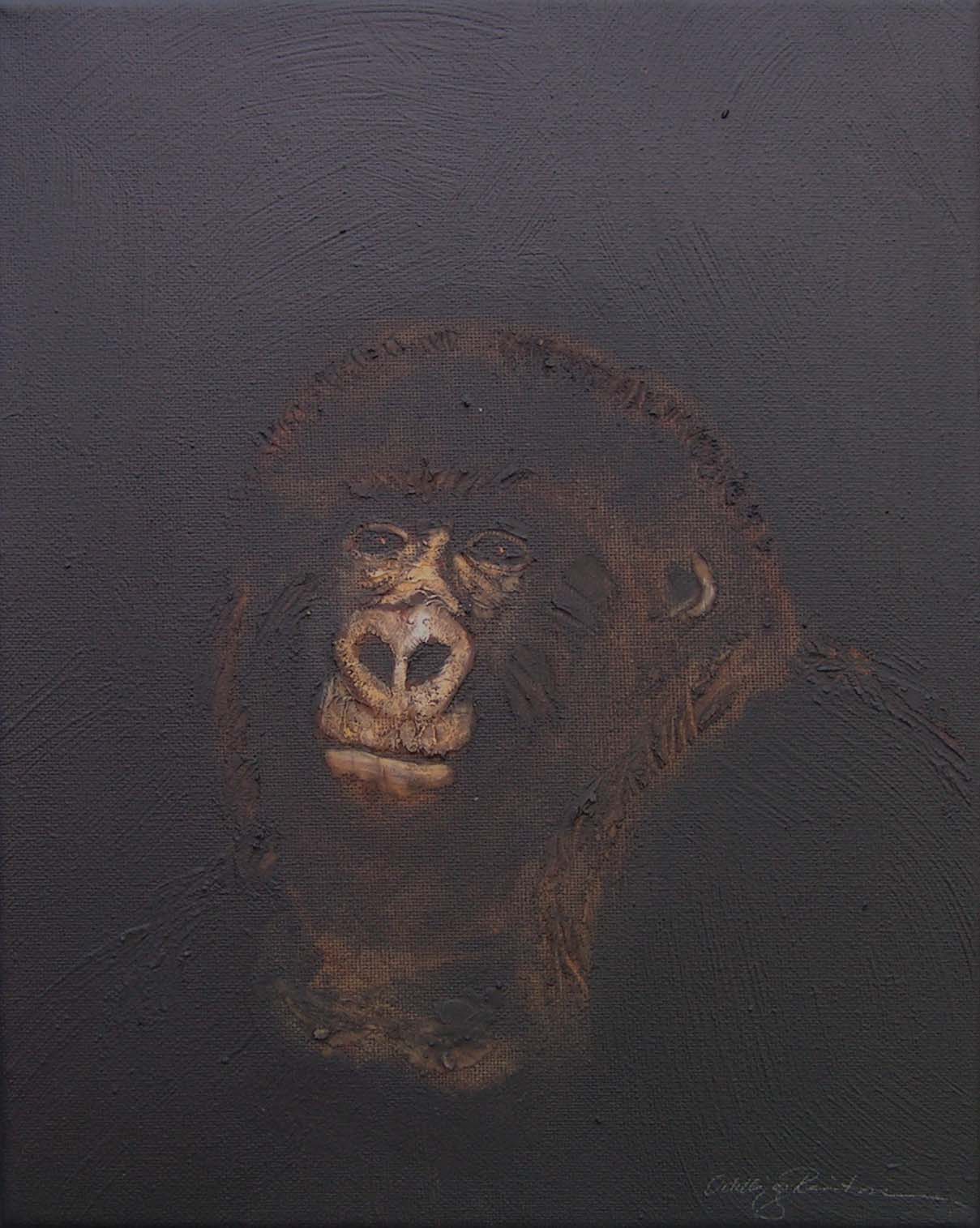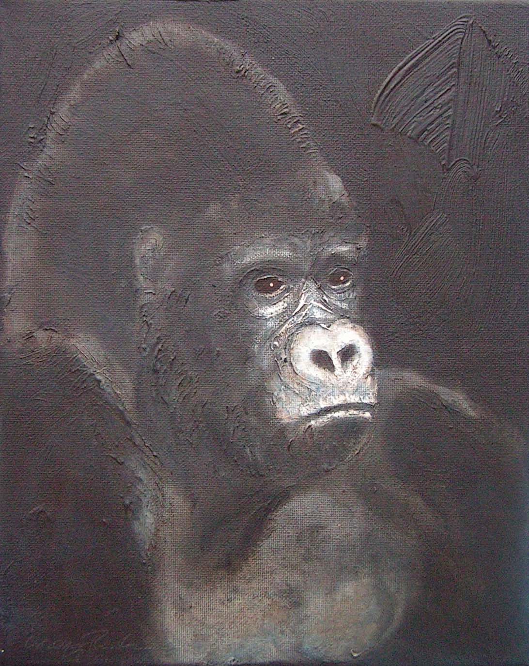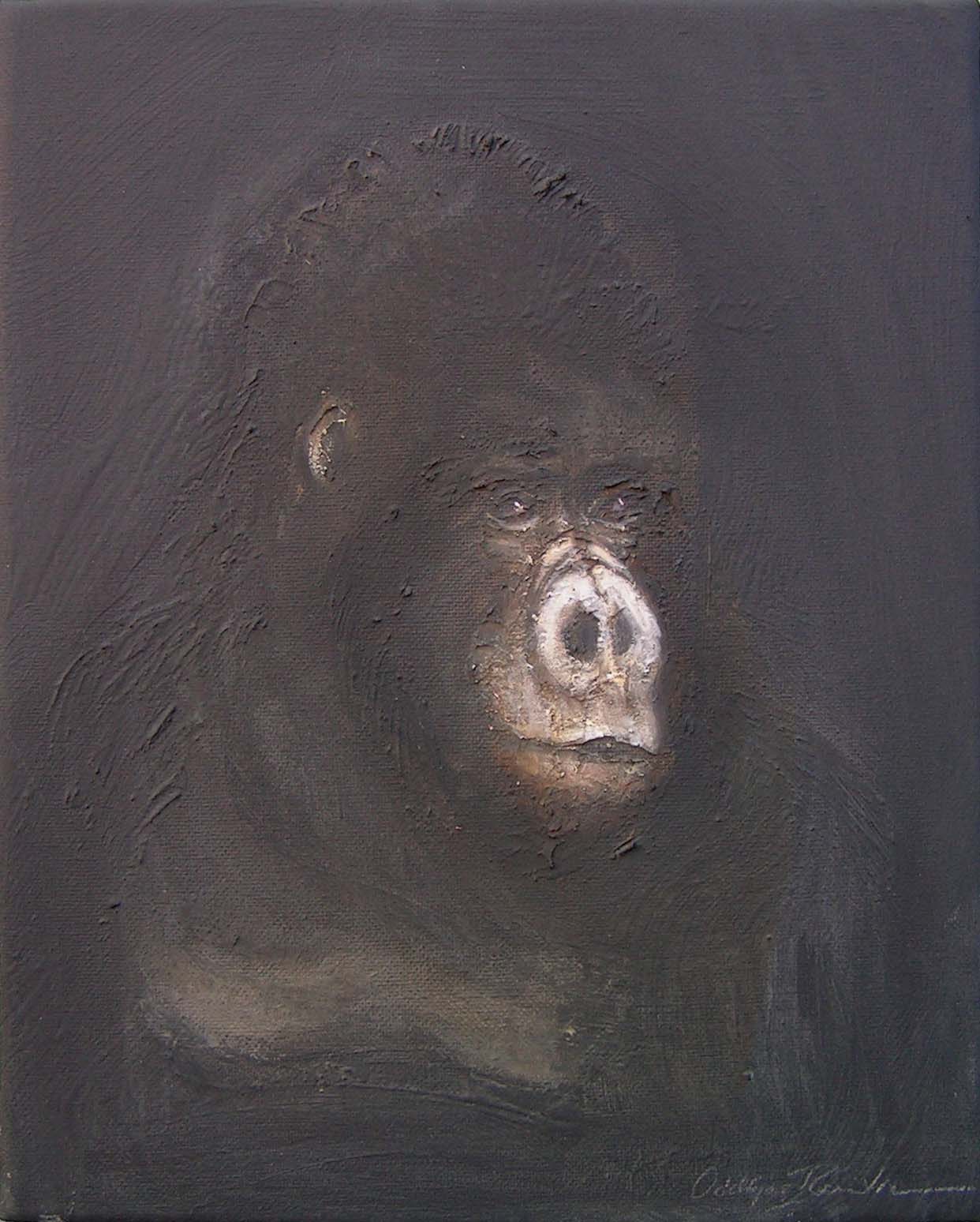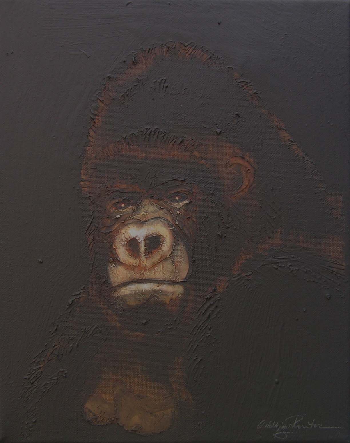 Between 2004 and 2006 I painted 200 small "portraits" (24 x 30 cm) of gorillas, much like photo ID, to refer to the Cross River gorilla (Nigeria and Cameroon), a subspecies of the western gorilla. At that time there were about 200 individuals left in the wild and the portraits were meant to represent a symbolic conservation measure for this animal in an attempt to make people aware of the looming extinction.
